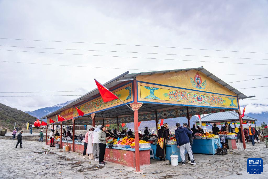 沿著219國(guó)道途經(jīng)西藏林芝米林市羌納鄉(xiāng)羌渡崗村時(shí),尼洋河與雅魯藏布江交匯的壯美景觀(guān)令人駐足,成為許多游客的打卡點(diǎn)。勤勞的羌渡崗村婦女們,在這里擺起水果攤,還賣(mài)起了甜茶、青稞餅,吸引了眾多遠(yuǎn)道而來(lái)的游客。