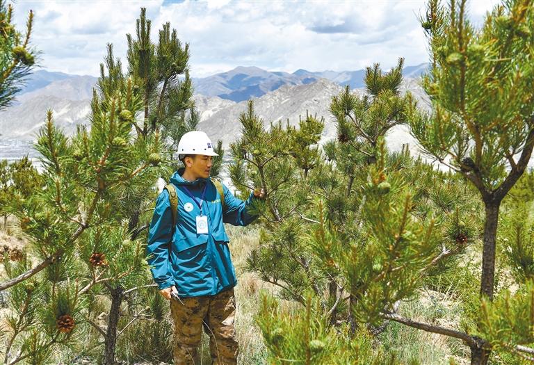 工程的綠意還延伸至拉薩貢嘎機(jī)場(chǎng)周邊的山體,山南市林草局林業(yè)和草原有害生物防治站檢疫員次仁羅布在造林現(xiàn)場(chǎng)進(jìn)行苗木復(fù)檢工作,復(fù)檢結(jié)果顯示這批苗木的成活率達(dá)到92%?!斑@里是走出貢嘎機(jī)場(chǎng)的第一站,旅客們可以直接看到我們種下的綠色,很有意義?!贝稳柿_布說(shuō)。