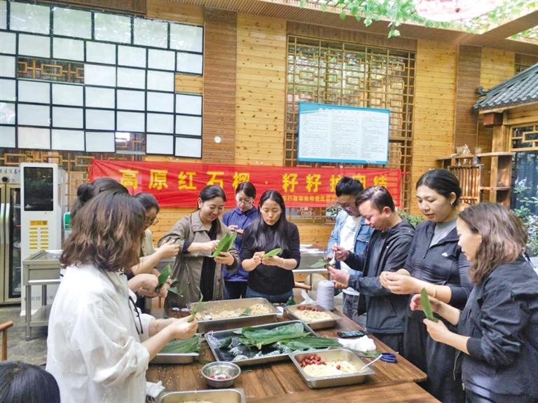 圖為日喀則市行政審批和便民服務(wù)局組織開展共聚“民族餐”活動,各族干部在一起包粽子。