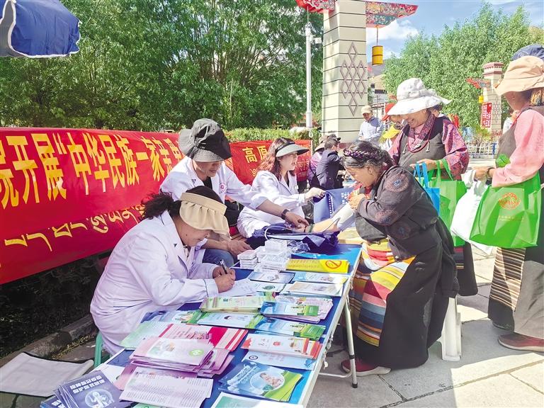 圖為仁布縣衛(wèi)健委開展以“中華民族一家親·愛心義診送萬家”為主題的免費(fèi)義診活動。