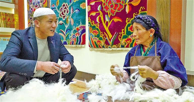 圖為江孜縣組織開展民族文化、民族手工業(yè)、民族飲食、民族服裝等沉浸式體驗(yàn)活動。這是回族群眾在體驗(yàn)傳統(tǒng)服裝制作工序。