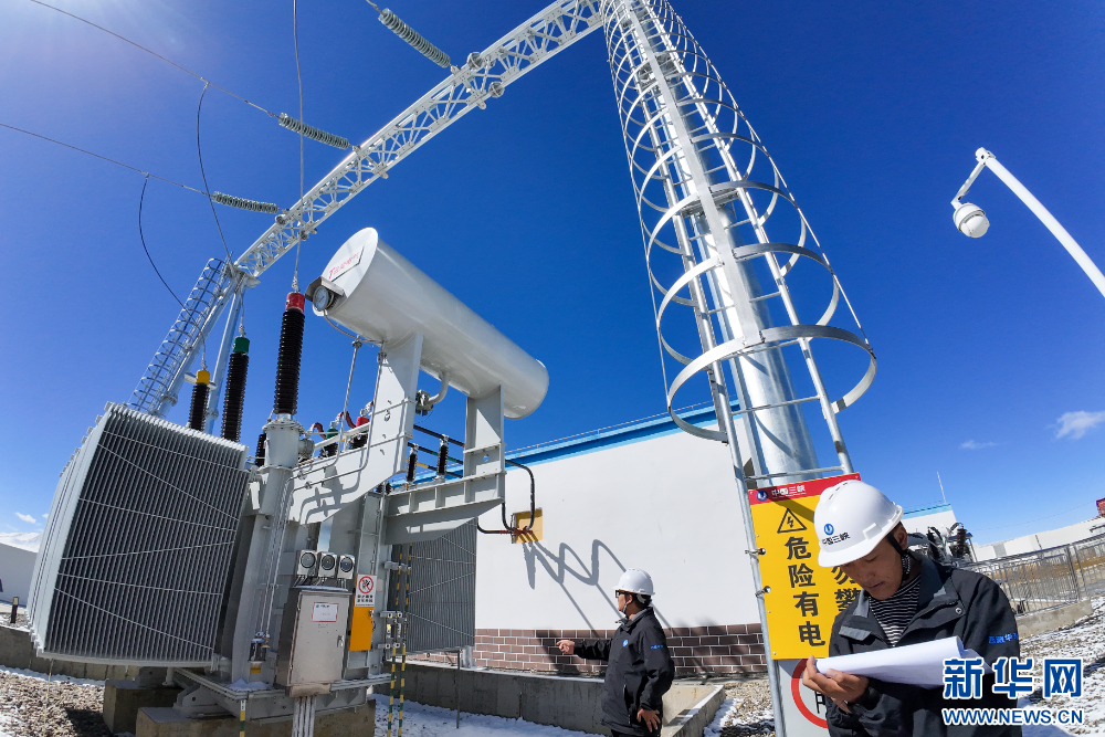 工作人員在110千伏協(xié)合措美縣20兆瓦MW并網(wǎng)光伏電站進行日常檢查。新華網(wǎng) 旦增努布 攝