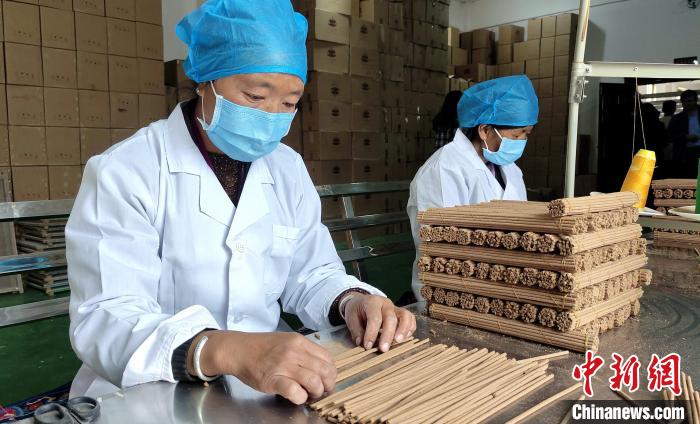 “我們農(nóng)閑時(shí)就會(huì)來(lái)這里制作藏香?!睅孜宦耦^工作的婦女不善言談,但她們數(shù)線香、捆藏香流程十分嫻熟,她們足不出村實(shí)現(xiàn)就業(yè)增收?! ?/p>