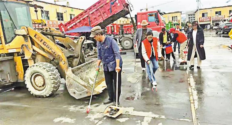 巴宜區(qū)尼池社區(qū)的工作人員身穿紅馬甲,手拿鐵鍬、掃帚等工具對(duì)林芝市快修市場(chǎng)附近的垃圾雜物進(jìn)行清理,“黨建引領(lǐng)聚合力 環(huán)境整治我先行”的標(biāo)語(yǔ)迎風(fēng)飄揚(yáng);
