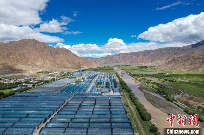 經(jīng)過(guò)近三十年的發(fā)展,西藏白朗縣大棚蔬菜產(chǎn)業(yè)已具規(guī)模。圖為航拍白朗縣年楚河畔的大棚設(shè)施。記者 江飛波 攝