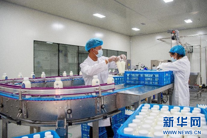 8月21日拍攝的嘎確牧場奶制品流水線。新華網(wǎng) 旦增努布攝