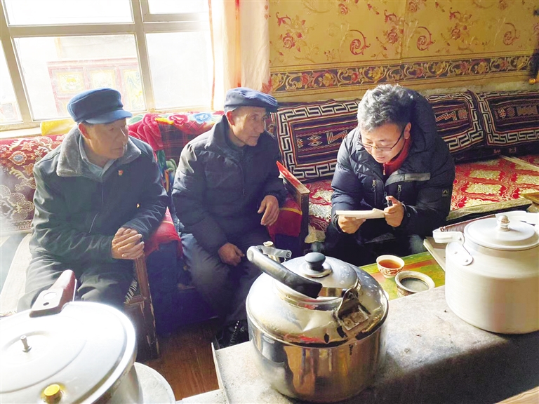旦增頓珠作為隊(duì)長(zhǎng)和第一書記,一邊努力克服高反給自身帶來的不適,一邊幫助隊(duì)員調(diào)整心態(tài)、適應(yīng)環(huán)境,并主動(dòng)挑起了照顧大家的重?fù)?dān)——到草場(chǎng)上撿牛糞取暖,到小河溝破冰挑水,研究如何用高壓鍋?zhàn)鲲?。他的付出,?duì)員們看在眼里、記在心里,在旦增頓珠的帶領(lǐng)和鼓舞下,隊(duì)員們很快適應(yīng)了高原的生存環(huán)境,隨即投入到走訪和調(diào)研工作中。