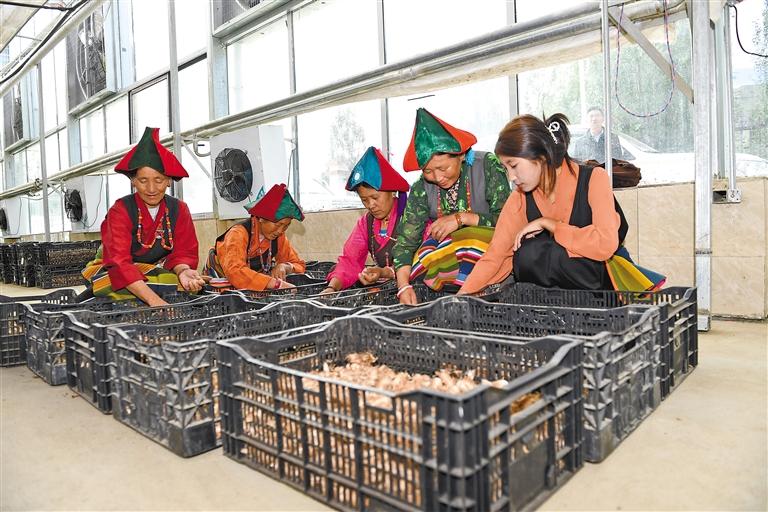 圖為在日喀則市薩迦縣扯休鄉(xiāng)藏紅花種源種養(yǎng)基地內(nèi),工人對藏紅花種子進行分類。記者 王敏 劉倩茹 攝