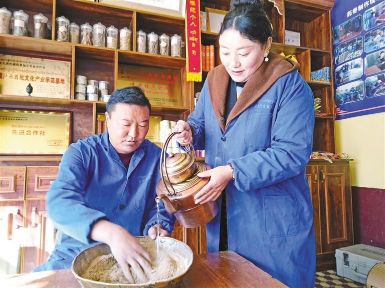 在村子里,受他們的影響,村民們也躍躍欲試,紛紛成立了合作社。曲旺作為婦女代表,站在工坊中間,目光堅(jiān)定而充滿希望:“今后啊,我更有信心帶動(dòng)更多的姐妹走上商業(yè)發(fā)展道路,讓咱這藏香事業(yè)越做越大,在傳承非遺的同時(shí),繼續(xù)給鄉(xiāng)親們鋪就增收致富路。”
