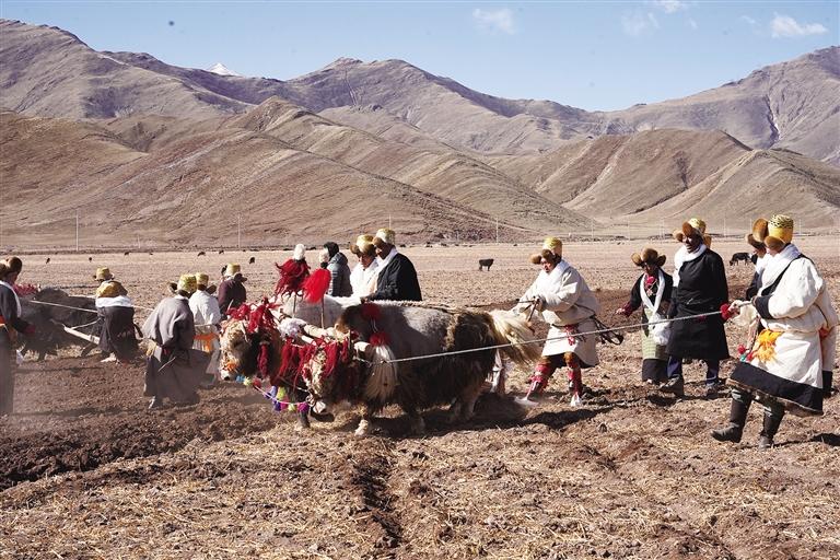 3月16日,西藏阿拉嘉寶酒業(yè)第十屆開(kāi)耕節(jié)暨林周縣春堆鄉(xiāng)春播儀式成功舉辦,活動(dòng)現(xiàn)場(chǎng)熱鬧非凡,村民沿襲傳統(tǒng),使用二牛抬杠翻土犁地。