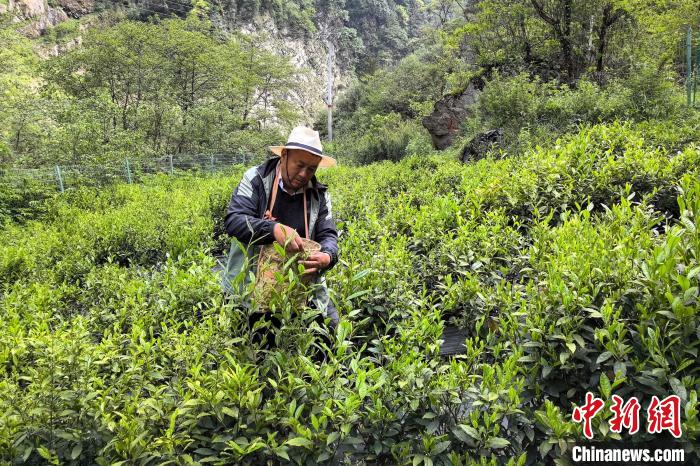 圖為2024年5月20日,格桑旦增在茶田采摘茶青。受訪者 供圖