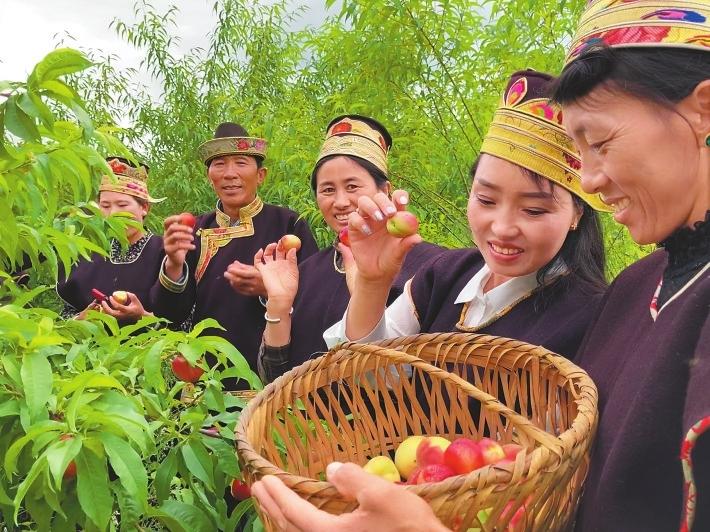 近年來,嘎拉村發(fā)展“桃花經(jīng)濟(jì)”,做好“旅游+”文章,打造以桃花源景區(qū)為主的鄉(xiāng)村旅游產(chǎn)業(yè),同時(shí)發(fā)展觀光采摘園,擦亮“桃花村”品牌。村里組建農(nóng)牧民運(yùn)輸隊(duì),積極參與重大項(xiàng)目建設(shè),集體經(jīng)濟(jì)日益壯大、村民“腰包”越來越鼓,群眾吃上“生態(tài)飯”、走上“致富路”。