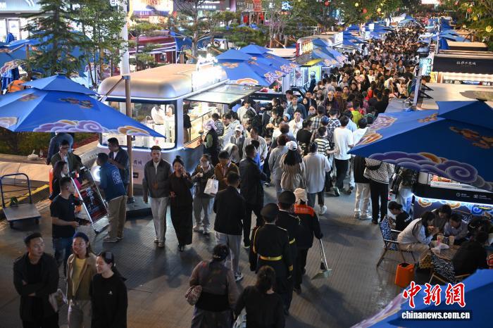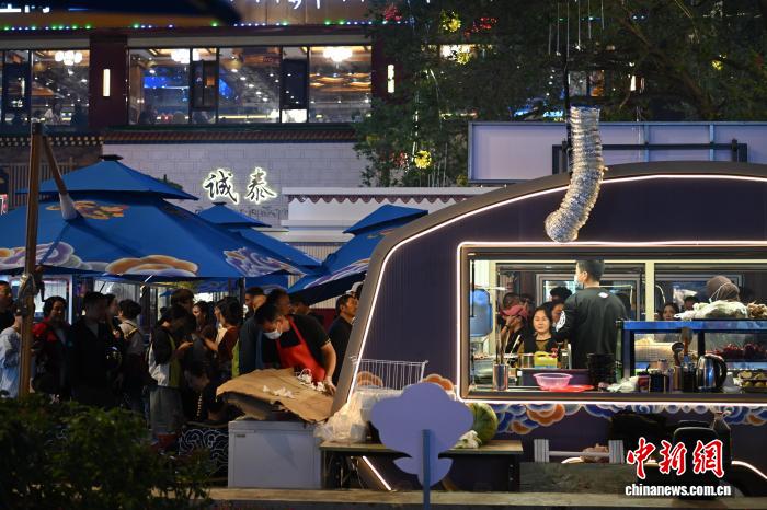 自7月15日開街以來,西藏自治區(qū)拉薩市城關(guān)區(qū)宇拓路370米長的“不夜城”迅速躥紅,每晚吸引近萬名游客與市民。改造后的街區(qū)內(nèi),集裝箱藝術(shù)區(qū)、霓虹餐車矩陣錯落有致,169個攤位熱鬧非凡。藏式牦牛肉燒烤、青稞美食等攤位前排起長隊,唐卡、藏香等文創(chuàng)產(chǎn)品人氣高漲。游客在此既能大快朵頤,也能沉浸式體驗藏地文化,“拉薩不夜城”正點亮高原夏夜,成為展示拉薩魅力的新窗口。中新社記者 貢嘎來松 攝