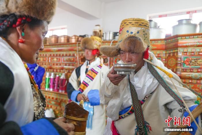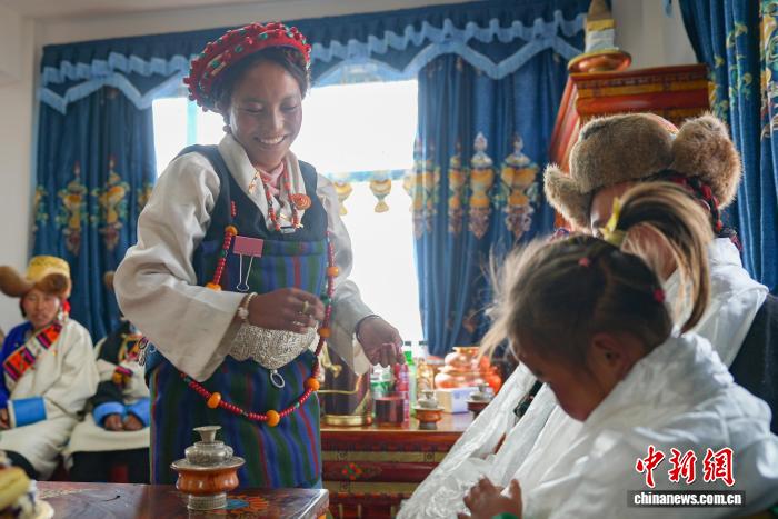 圖為定日縣加措鄉(xiāng)加布村村民慶祝喬遷新居。貢確 攝