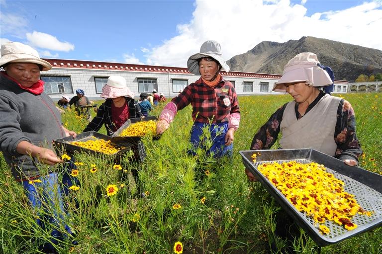圖為拉薩市曲水縣才納鄉(xiāng)現(xiàn)代農(nóng)業(yè)科技園的工作人員正在采摘雪菊。西藏日?qǐng)?bào)記者 白瑪澤旺 攝