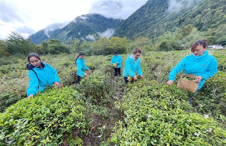 圖為林芝市易貢茶場(chǎng)的員工正在茶田間采茶。西藏日?qǐng)?bào)記者 白瑪澤旺 攝