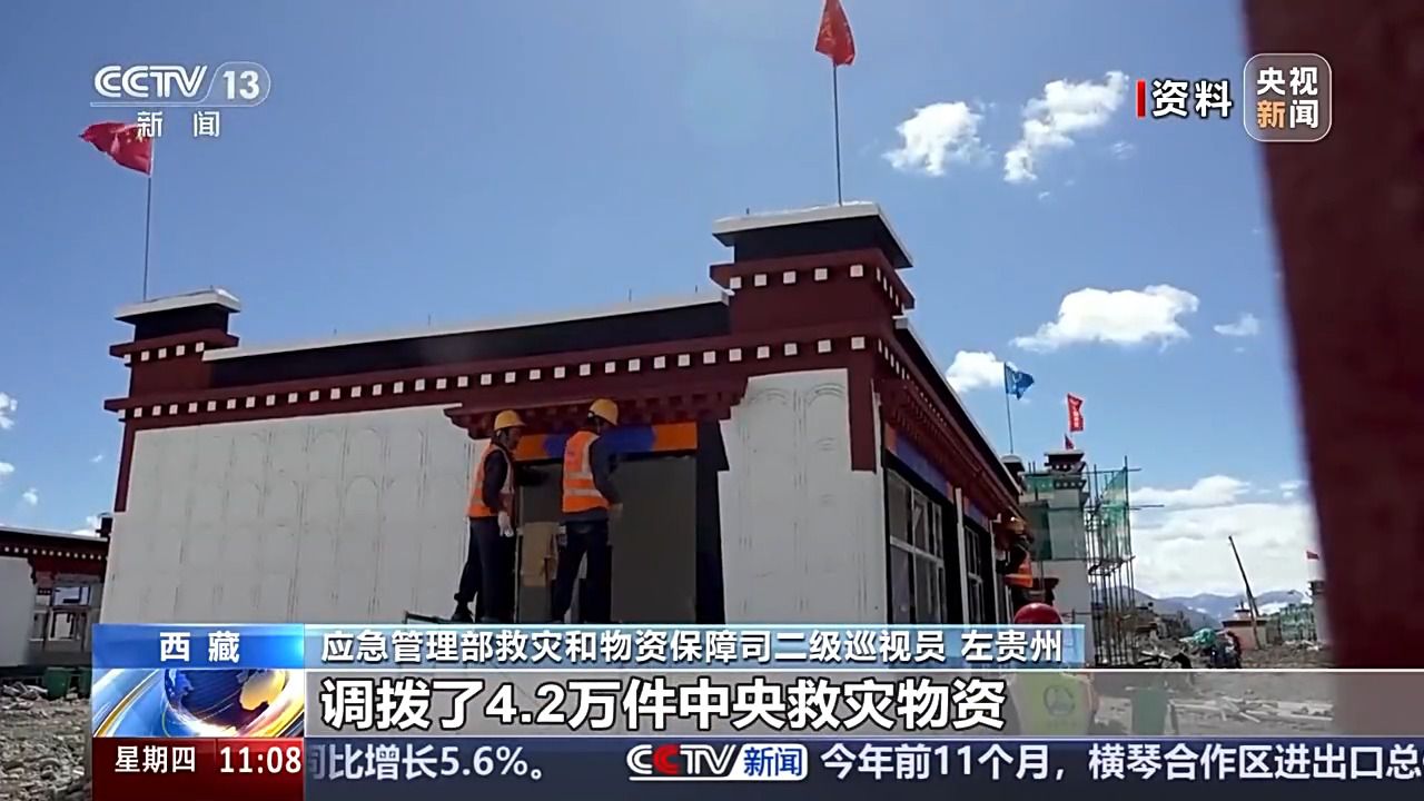 應急管理部救災和物資保障司二級巡視員 左貴州:針對定日地震,國家防減救災委協(xié)調(diào)下?lián)芰?4億中央救災資金,調(diào)撥了4.2萬件中央救災物資,并啟動了應急物資保障政社協(xié)同機制,調(diào)撥一大批生活類的物資,確保受災群眾盡快恢復家園、溫暖過冬。