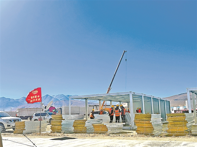 圖為2025年1月10日,定日縣受災(zāi)最嚴(yán)重的長所鄉(xiāng)多個安置點正在組織力量快速搭建活動板房。記者 次旦央吉 攝
