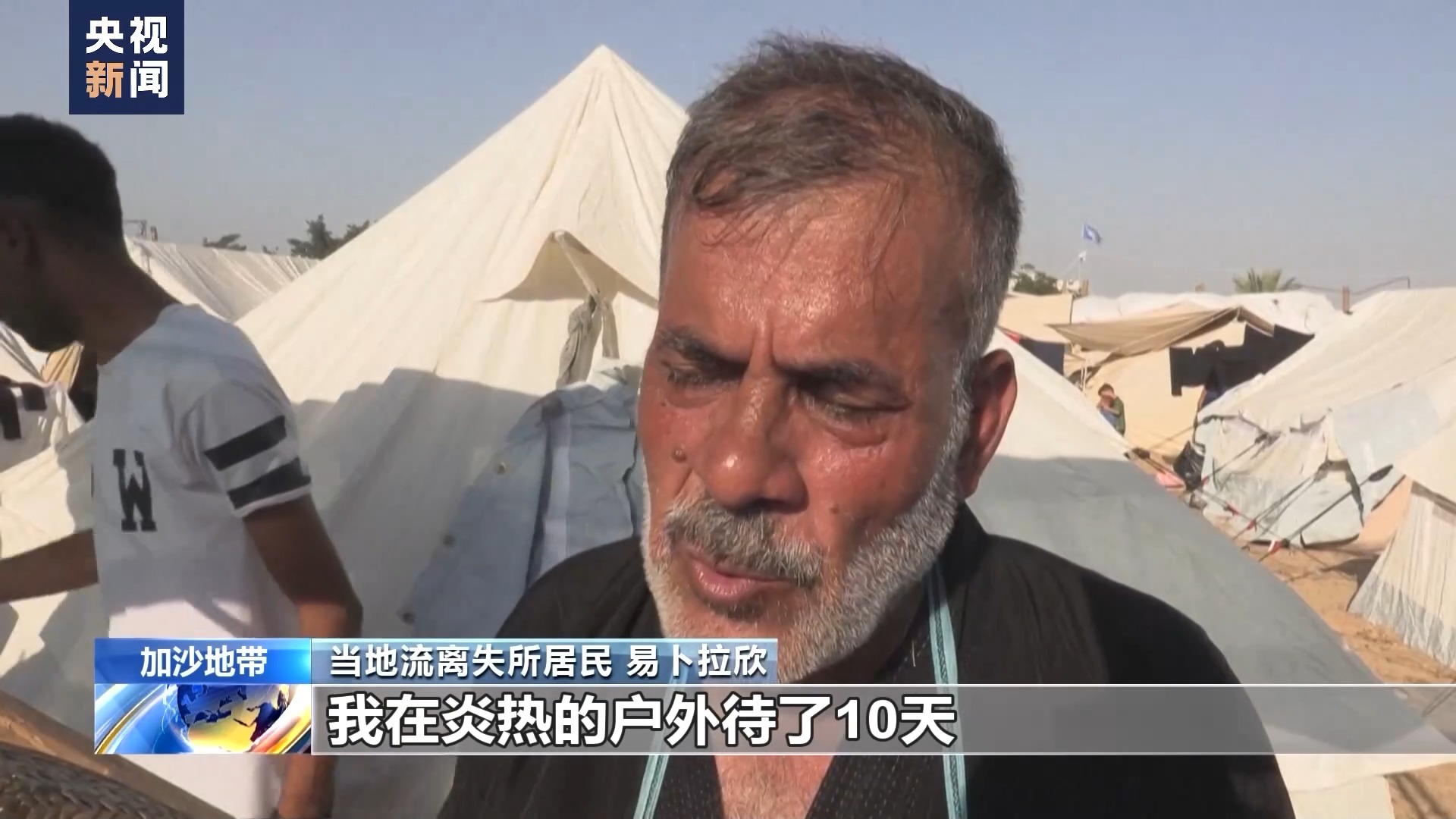 加沙地帶流離失所居民 易卜拉欣:為了躲避轟炸、毀滅和殺戮,我和九名家人搭乘兩輛車來(lái)到這里避難。為得到一個(gè)帳篷,我在炎熱的戶外待了10天。