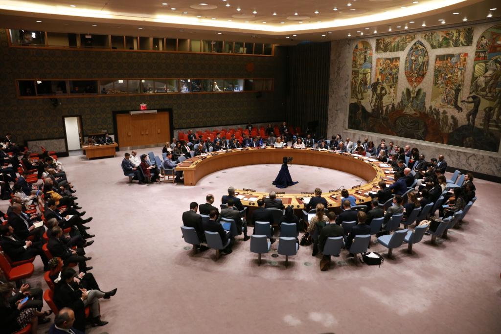 4月14日,在位于紐約的聯(lián)合國總部,聯(lián)合國安理會就伊朗襲擊以色列舉行緊急會議。新華社記者謝鍔攝