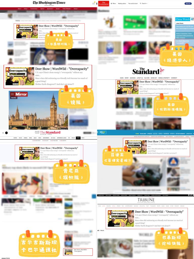 節(jié)目播出后,海外社交媒體瀏覽量突破百萬,被美國《華盛頓時報》、英國《鏡報》《倫敦標準晚報》《經濟學人》、巴基斯坦《論壇快報》、菲律賓《星報》、肯尼亞《旗幟報》、吉爾吉斯斯坦卡巴爾通訊社等多家境外主流媒體轉載。