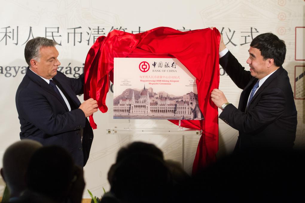 2015年10月2日,匈牙利總理歐爾班(左)在布達佩斯參加匈牙利人民幣清算行啟動儀式。該行成為中東歐首家人民幣清算行。新華社發(fā)(弗爾季·奧蒂洛攝)
