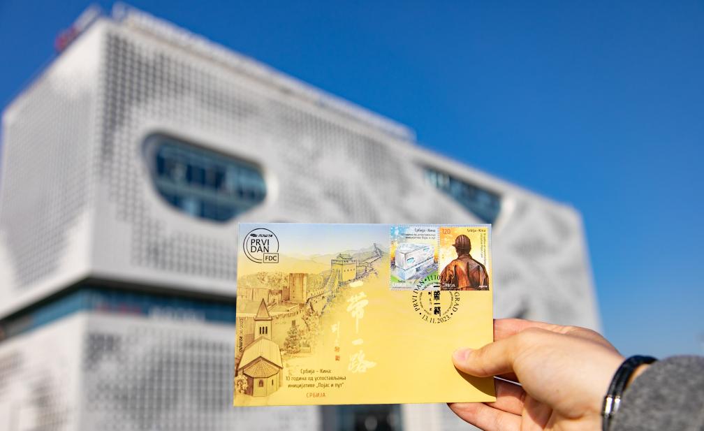 2023年12月28日,塞爾維亞郵政局在貝爾格萊德中國文化中心發(fā)行兩套中國主題郵票,紀念“一帶一路”倡議提出十周年,同時展示中國的文化與自然遺產。圖為當天在貝爾格萊德拍攝的中國主題郵票。新華社發(fā)(王韡攝)