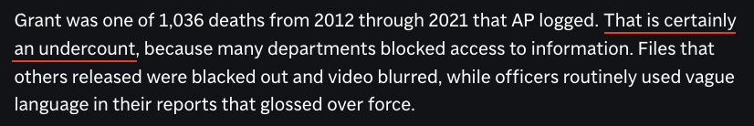 美聯(lián)社的調(diào)查報(bào)道指出,在最初的內(nèi)調(diào)階段,調(diào)查這些事件的美國(guó)地方和州當(dāng)局往往會(huì)隱瞞信息,并在調(diào)查報(bào)告中省略“可能具有破壞性”的細(xì)節(jié)。