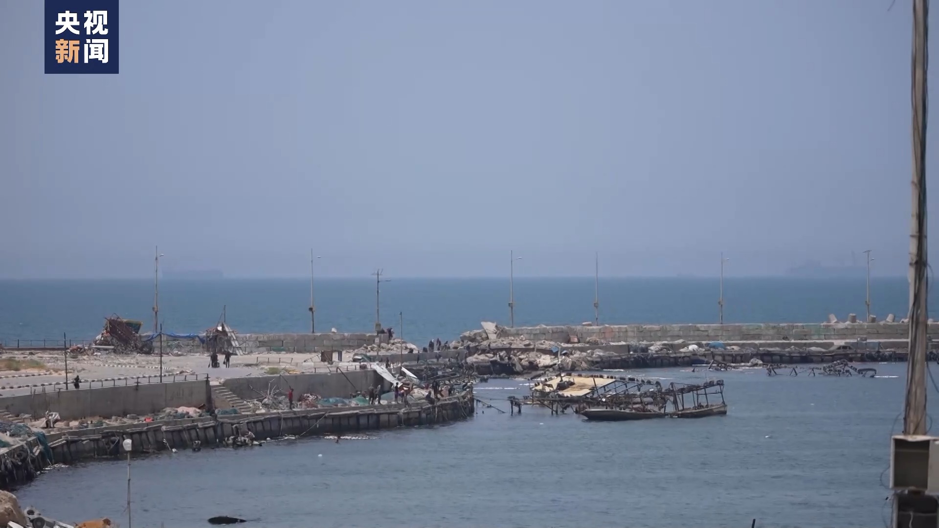 總臺(tái)報(bào)道員 奧薩馬:我們現(xiàn)在是在加沙城的港口附近。這是距離前往美軍浮動(dòng)碼頭船只最近的地點(diǎn),這個(gè)碼頭是由美國(guó)修建的,其宣稱(chēng)是為了向被圍困的加沙地帶提供人道主義援助。