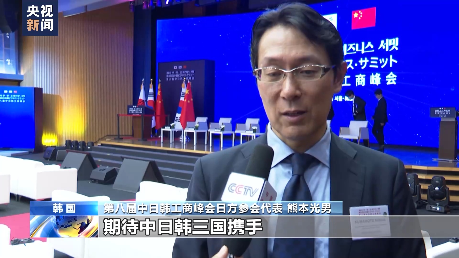 第八屆中日韓工商峰會(huì)韓方參會(huì)代表 鄭智永:通過中日韓工商峰會(huì),三國(guó)企業(yè)界進(jìn)一步溝通和交流,期待中日韓三國(guó)經(jīng)濟(jì)可以持續(xù)發(fā)展,也期待中日韓三國(guó)加深友好關(guān)系。