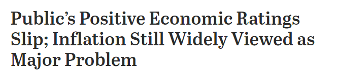 根據(jù)調(diào)查,現(xiàn)如今,只有23%的美國成年人認(rèn)為經(jīng)濟(jì)狀況良好,低于一月份的28%。從兩黨來看,37%的民主黨人以及傾向于民主黨的人對(duì)經(jīng)濟(jì)持積極態(tài)度,僅10%的共和黨人及支持共和黨的人持積極態(tài)度。