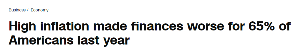 美聯(lián)儲(chǔ)近日發(fā)布的《2023年美國家庭經(jīng)濟(jì)狀況報(bào)告》(Economic Well-Being of US Households)顯示,65%的美國家庭的財(cái)務(wù)狀況因通脹而惡化,其中19%的人認(rèn)為財(cái)務(wù)狀況“嚴(yán)重惡化”。