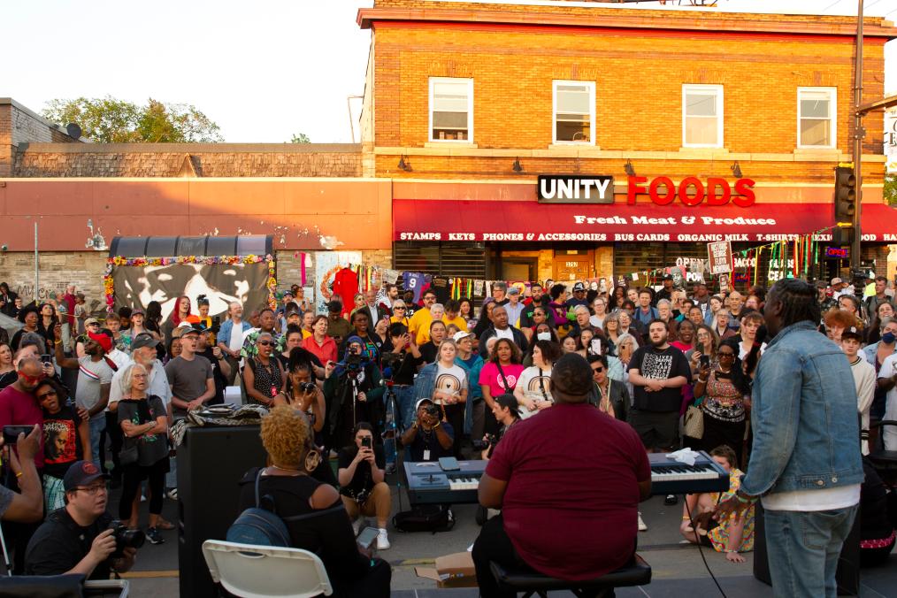 2023年5月25日,在美國明尼蘇達州明尼阿波利斯市,人們參加哀悼活動,紀念弗洛伊德遇害三周年。2020年5月25日,“無法呼吸”的非洲裔男子喬治·弗洛伊德死于白人警察膝下,成為美國人權(quán)史上的恥辱一頁。新華社發(fā)(比利·布里格斯攝)