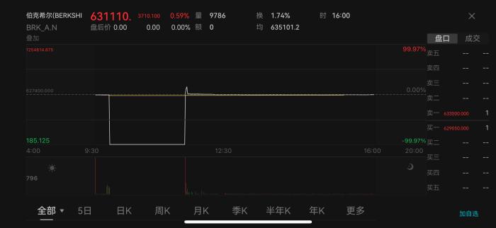 周一開盤,美股遭遇多股異動,40余只股票集體瞬間暴跌近100%。其中,股神巴菲特旗下的伯克希爾公司A類股從每股62萬美元的高價(jià)跳至185.1美元,巴里克黃金、紐斯卡爾動力公司等股票一度掉至不到1美元/股的“白菜價(jià)”。