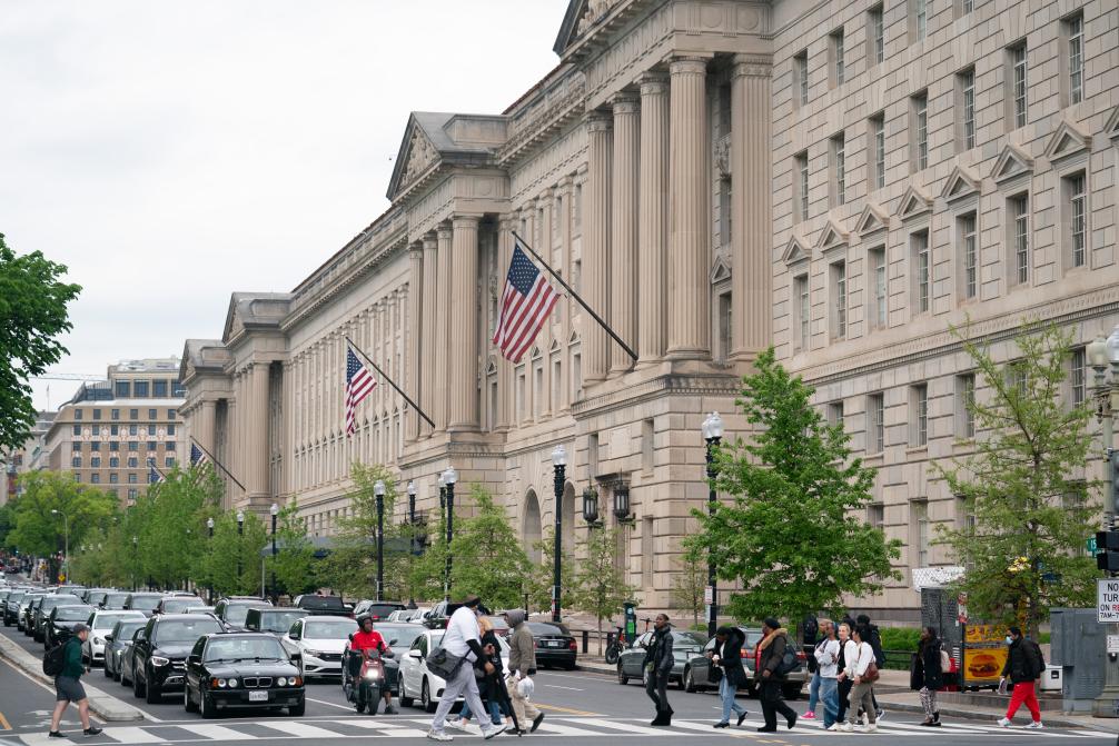 這是4月25日在美國首都華盛頓拍攝的商務(wù)部大樓。新華社記者劉杰攝