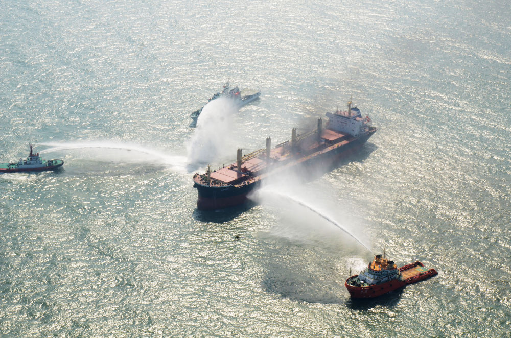 2017年10月31日,中國-東盟國家海上聯(lián)合搜救實船演練在廣東湛江海域舉行。該演練是各方落實《南海各方行為宣言》的一次海上務(wù)實合作項目。新華社記者毛鑫攝