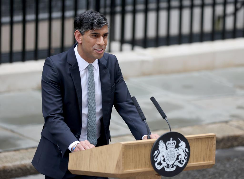 7月5日,蘇納克在英國(guó)倫敦唐寧街10號(hào)首相府前對(duì)媒體發(fā)表講話。新華社記者李穎攝