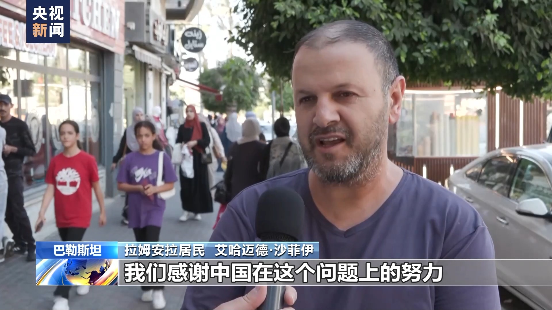 拉姆安拉居民 艾哈邁德·沙菲伊:我們感謝中國在這個(gè)問題上的努力,我們真的希望中國的努力能夠成功,因?yàn)榘屠账固谷嗣褚呀?jīng)厭倦了分裂。
