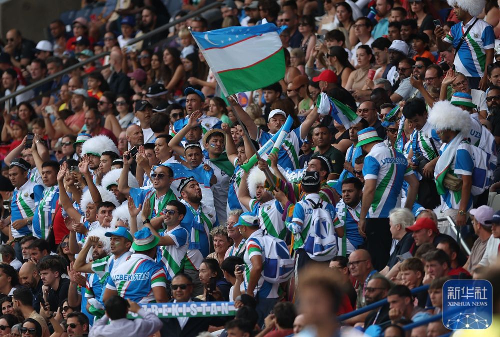 烏茲別克斯坦隊(duì)球迷在看臺加油助威。新華社記者 黃宗治 攝