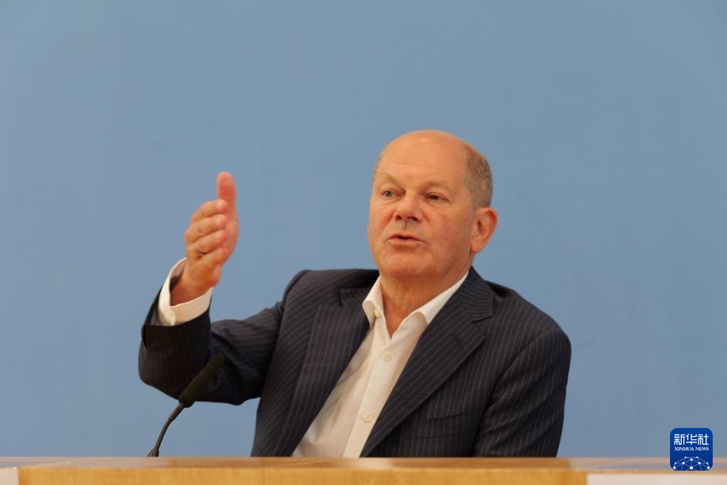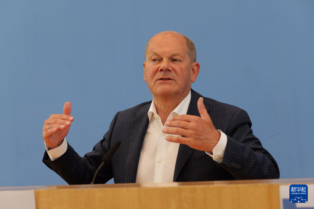 7月24日,德國(guó)總理朔爾茨在柏林舉行的新聞發(fā)布會(huì)上講話。新華社記者 李函林 攝