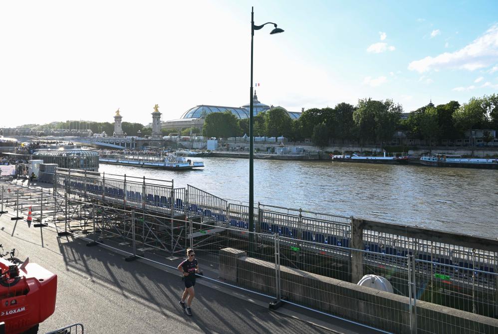 ??這是塞納河畔的開幕式看臺(tái)(7月4日攝)。新華社記者 賀長(zhǎng)山 攝