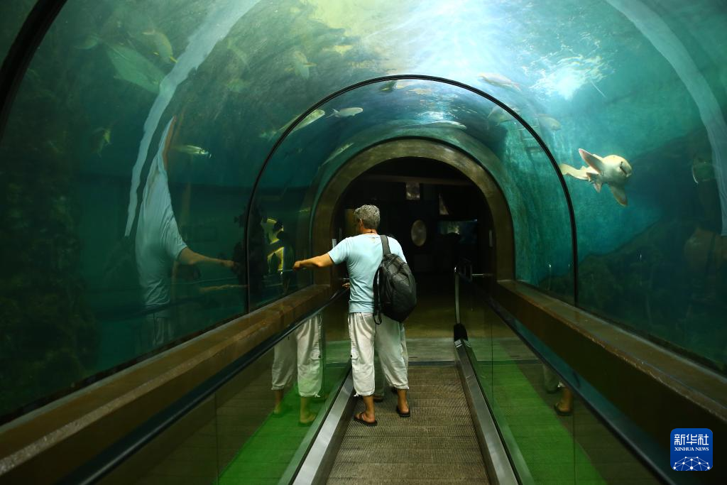 7月23日,游客參觀泰國(guó)普吉海洋生物中心內(nèi)設(shè)的水族館。新華社記者 孫瑋彤 攝