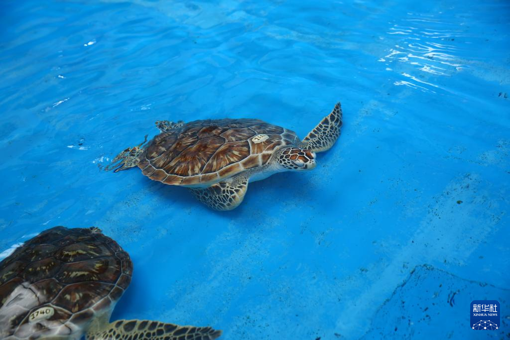 這是7月23日在泰國(guó)普吉海洋生物中心拍攝的被救助的海龜。新華社記者 孫瑋彤 攝