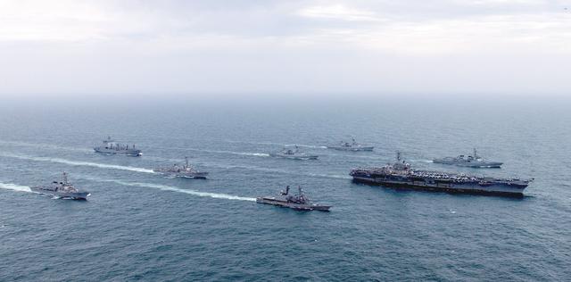 例如,美軍在西太平洋進(jìn)行多邊反潛作戰(zhàn)演習(xí),在南海與菲律賓海軍進(jìn)行聯(lián)合行動,并與日本和韓國在東海進(jìn)行三邊演習(xí)。此外,美國還與日本海上自衛(wèi)隊在菲律賓附近水域舉行了演習(xí)。