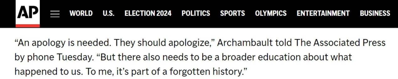 “道歉是必要的,他們應(yīng)該道歉。而我們也需要對發(fā)生在我們身上的事情進行更廣泛的教育。對我來說,這是一段被遺忘的歷史?!?/p>