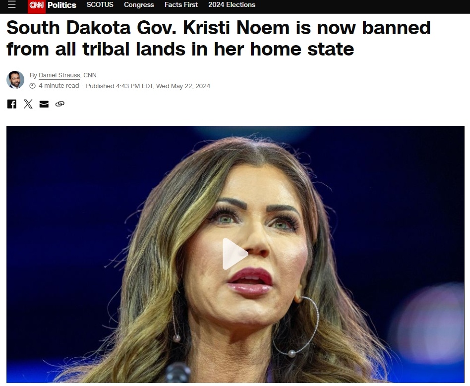 由于不滿諾姆屢次發(fā)表歧視性言論,南達科他州全部9個印第安人保留地先后投票表決,宣布“驅(qū)逐”這名女政客。