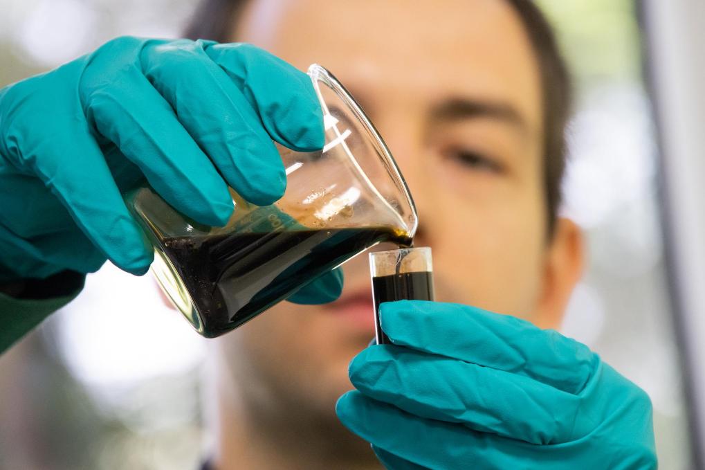 2022年5月24日,在匈牙利薩茲豪隆包陶多瑙河煉油廠,一名工人對通過阿德里亞輸油管道運(yùn)達(dá)的原油樣品進(jìn)行質(zhì)量分析。新華社發(fā)(弗爾季·奧蒂洛攝)