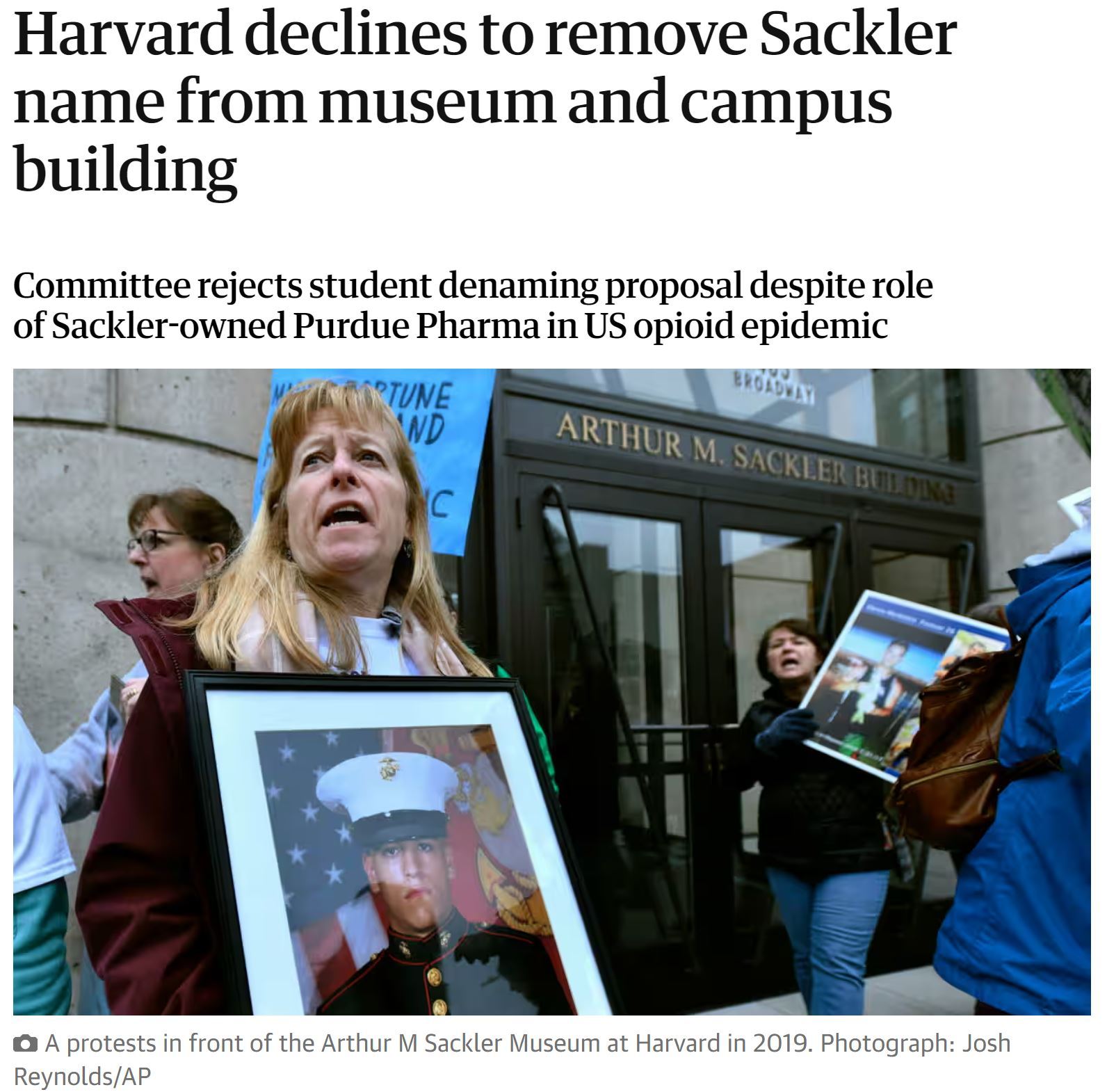 近日,美國哈佛大學(xué)拒絕了部分學(xué)生及有關(guān)方面提出的將“薩克勒”這一名字從哈佛大學(xué)博物館及其他校內(nèi)建筑上去除的要求,再次引發(fā)了人們對(duì)美國藥物成癮問題的關(guān)注。