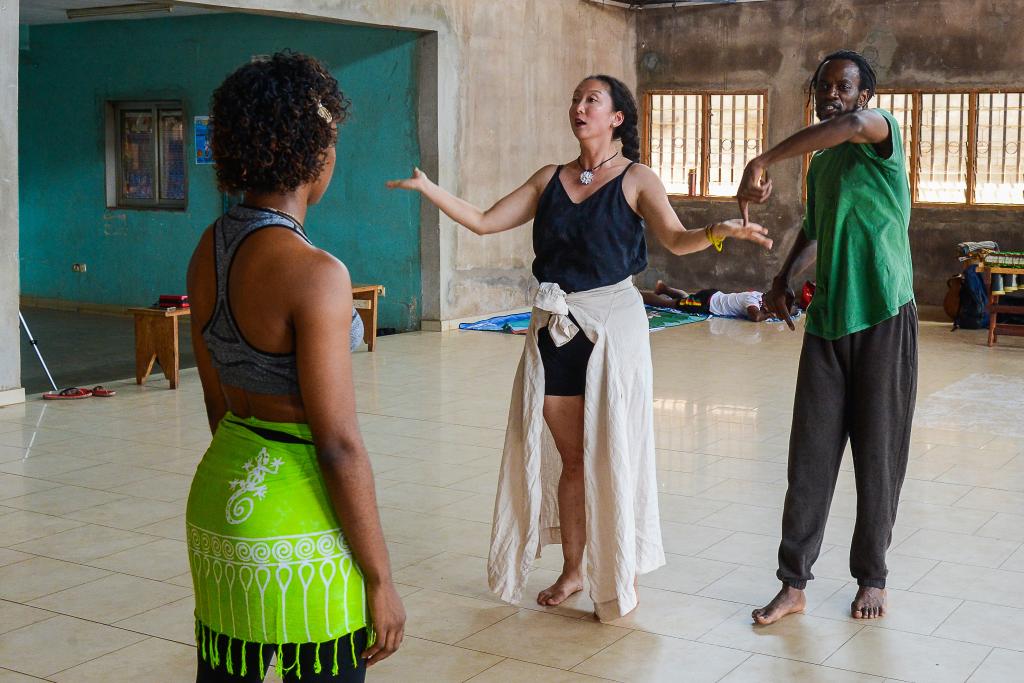 為了讓沒有任何專業(yè)基礎(chǔ)的喀麥隆學(xué)生們理解現(xiàn)代舞,娜爾斯和蔣可鈺還想到用中國太極和源于印度的瑜伽,向?qū)W員們講解太極圓弧運(yùn)動和道家哲學(xué)思想,讓學(xué)生們領(lǐng)會中國太極和東方文化的思想內(nèi)涵,催化了中非古老文化的融合。