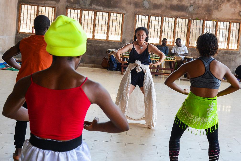 這是中國舞蹈演員蔣可鈺在喀麥隆首都雅溫得教年輕人跳舞。